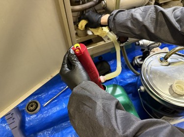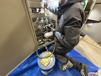 劣化した潤滑油を除去後、新品の潤滑油を充填します。